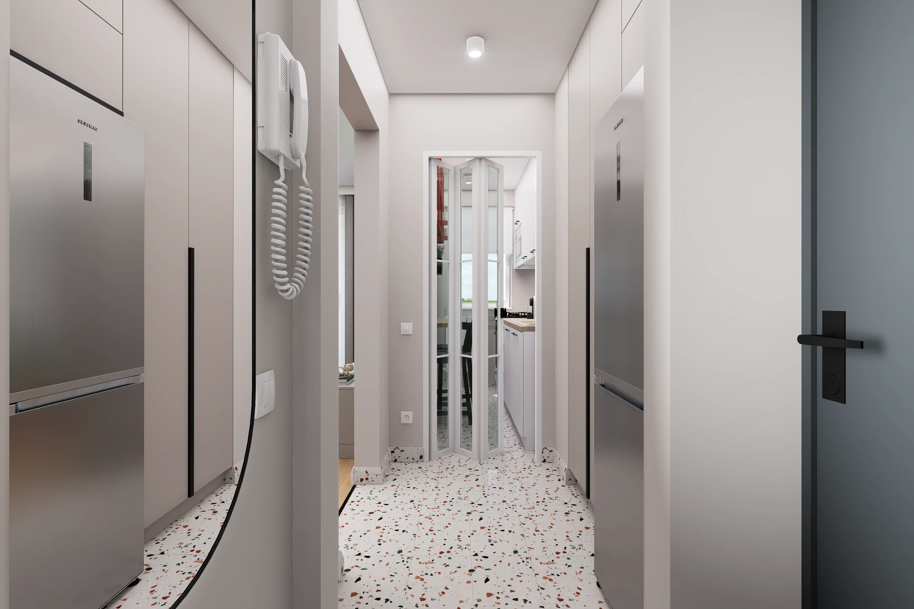 Provocarea principală a acestui proiect a fost integrarea unui nivel ridicat de funcționalitate și a cât mai multor spații de depozitare, într-un apartament cu o suprafață redusă, fără a încărca vizual interiorul. Rezultatul este un spațiu modern, coerent și plin de viață, care răspunde eficient nevoilor de zi cu zi.