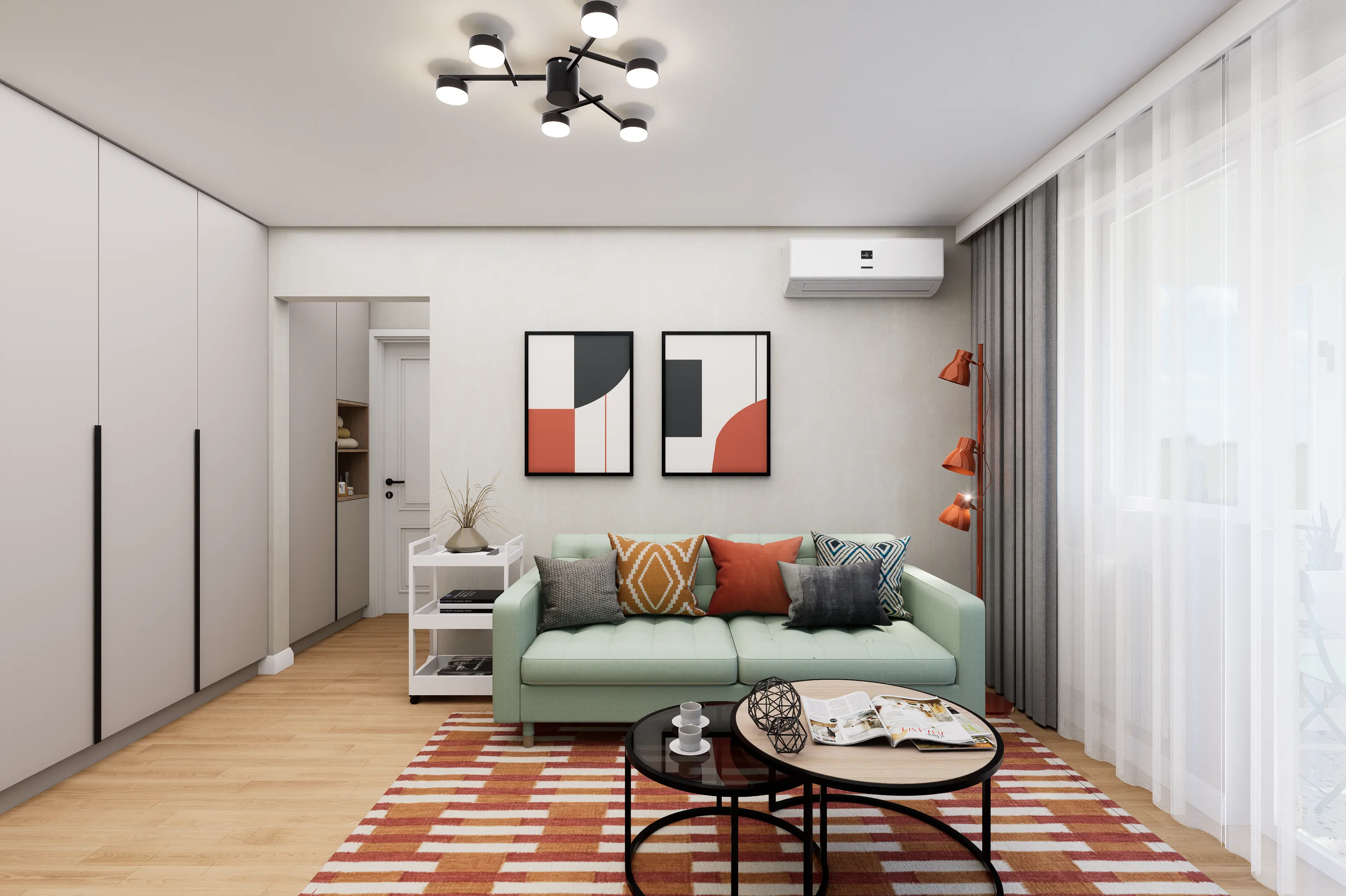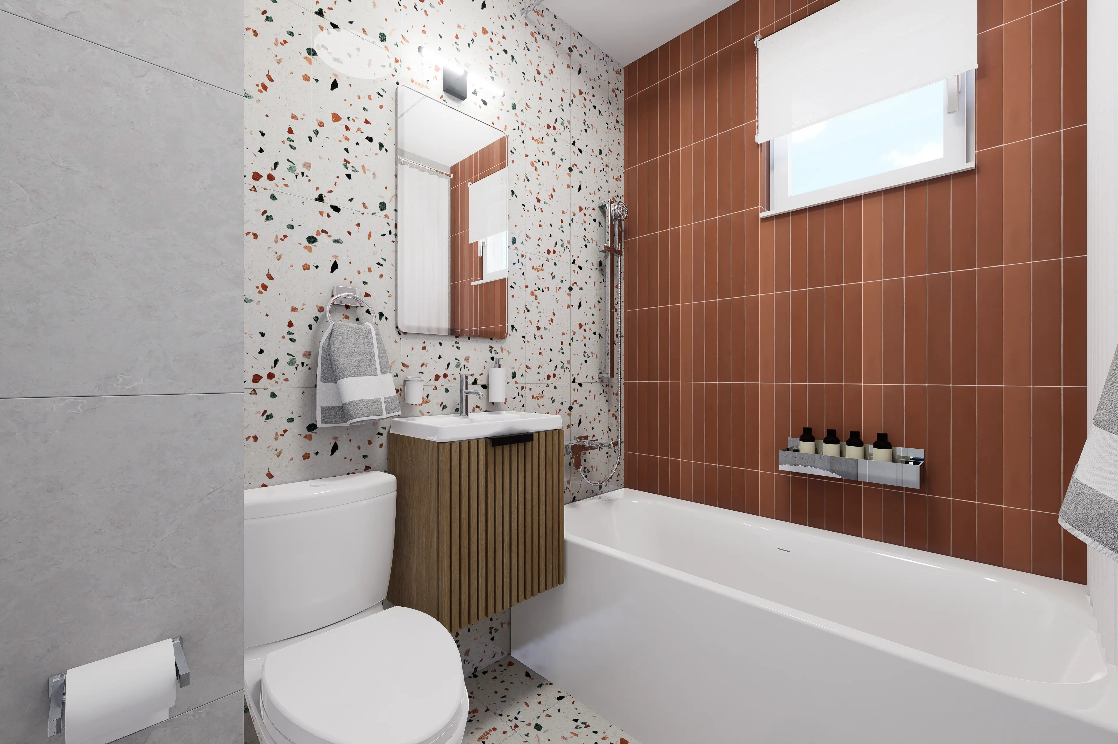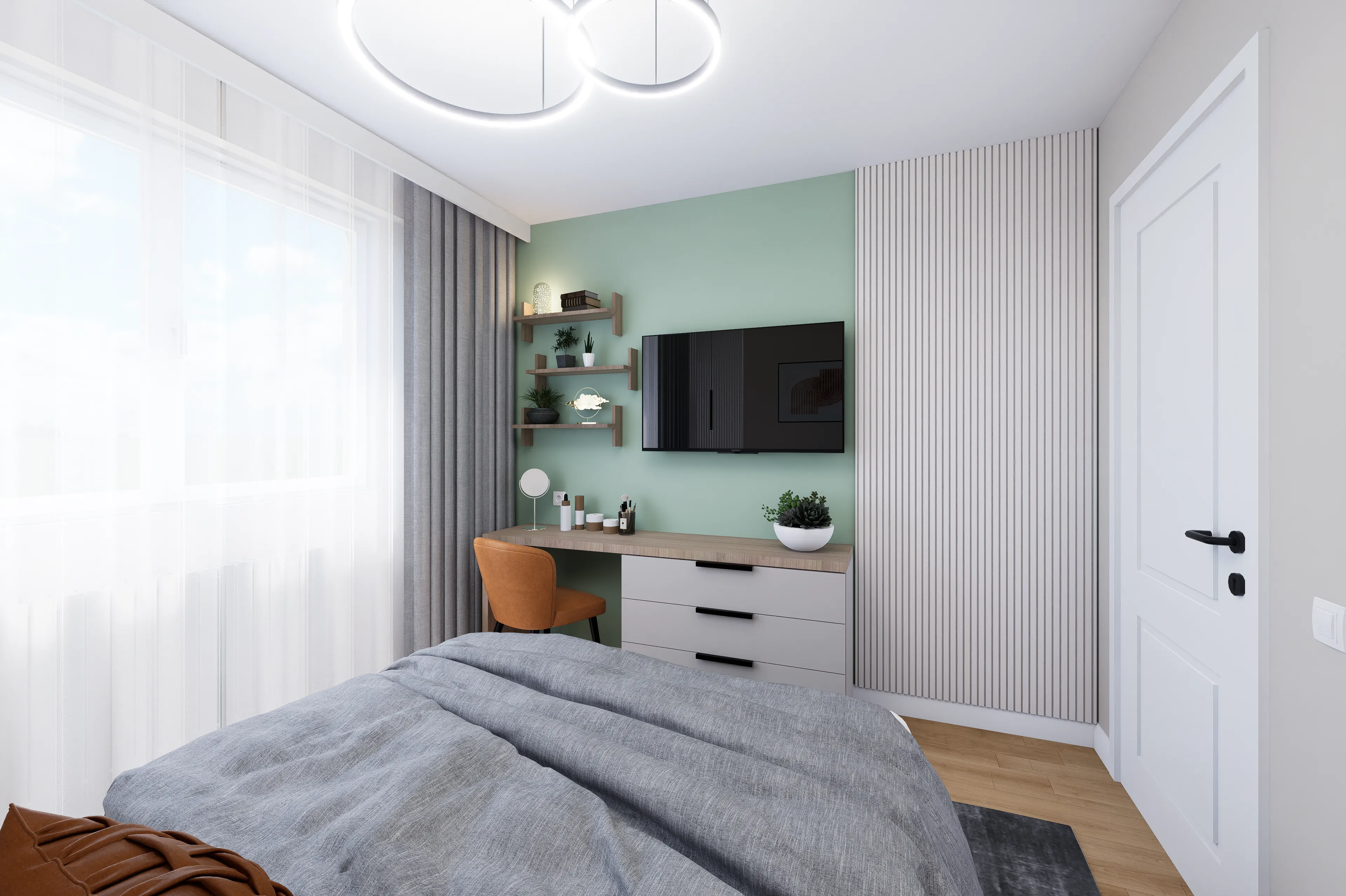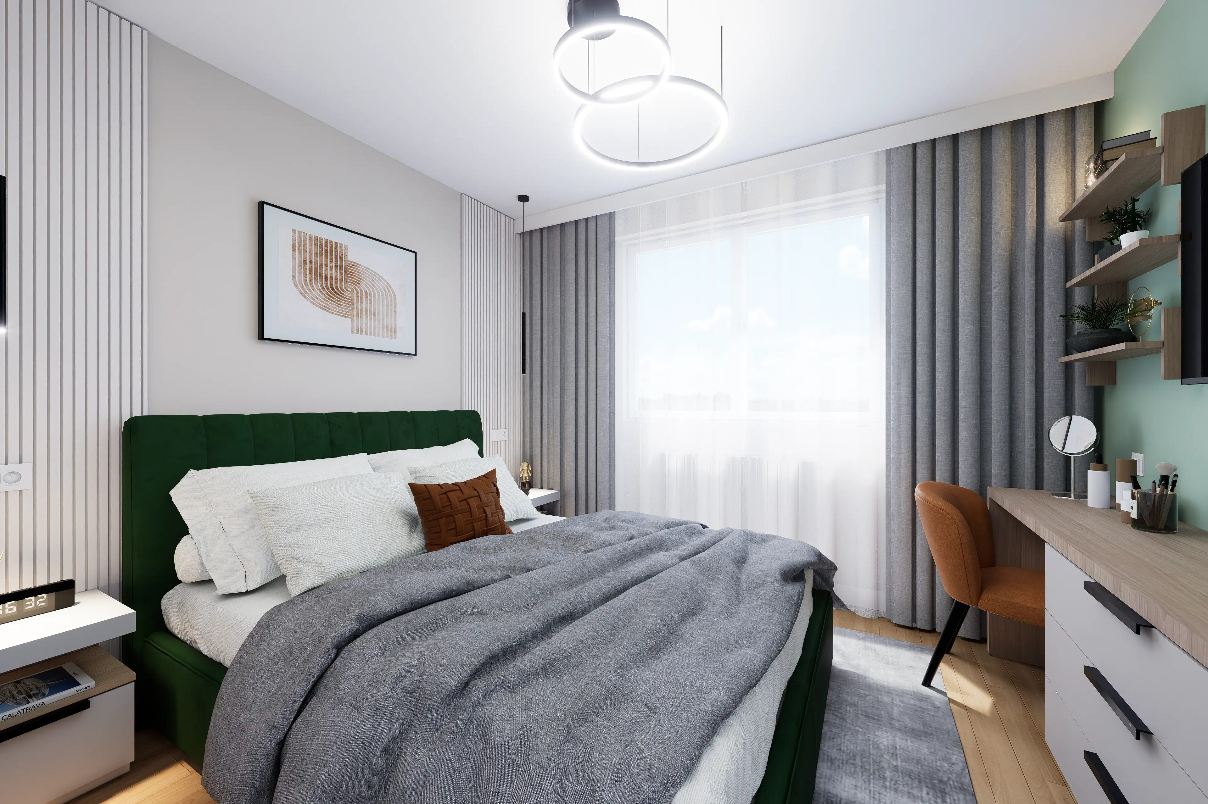 Designul propus îmbină tonuri calde și accente de culoare atent dozate, care dau viață interiorului și creează o atmosferă dinamică, primitoare și contemporană. Fiecare zonă a fost gândită astfel încât să transmită confort, dar și un plus de caracter, oferind o experiență vizuală memorabilă pentru viitorii chiriași.